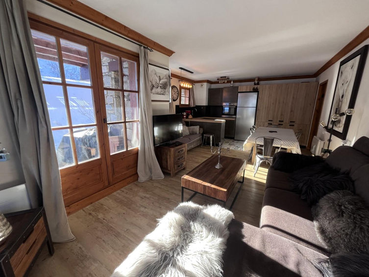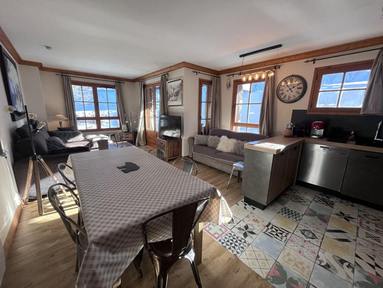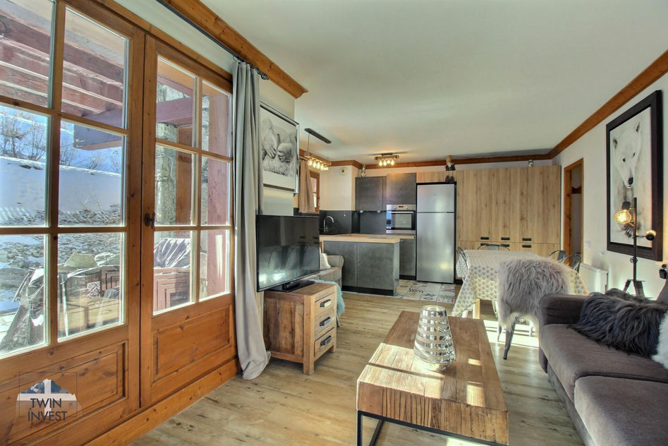 Idéal pour 6 à 8 personnes, avec terrasse plein sud et accès direct aux pistes (ski aux pieds).